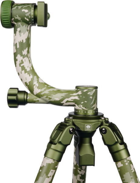 Profesjonalna głowica gimbalowa wykonana z włókien węglowych (główne ramię) i aluminium wykorzystywanego w lotnictwie (podstawa i ruchome ramię), co zapewnia dużą wytrzymałość i zmniejsza masę tego akcesorium. Głowice gimbalowe ułatwiają fotografowanie z wykorzystaniem ciężkich zestawów, takich jak np. lustrzanka z długim, profesjonalnym teleobiektywem. Mocując do niej taki zestaw możliwe jest operowanie nim z niezwykłą swobodą, zapominając o jego wadze.